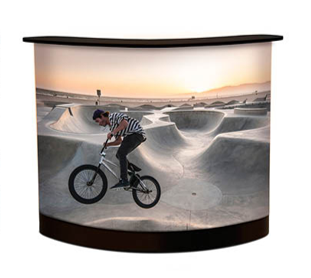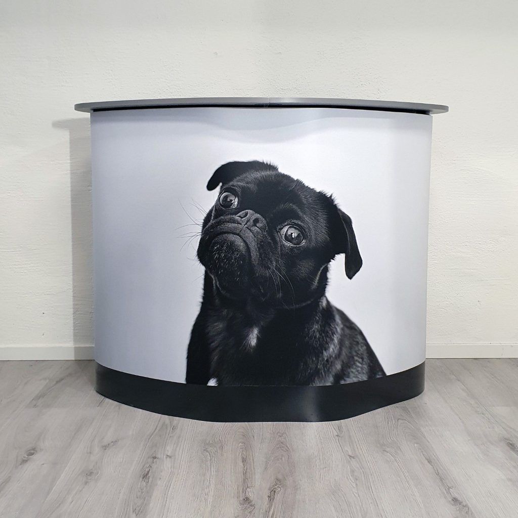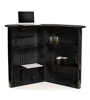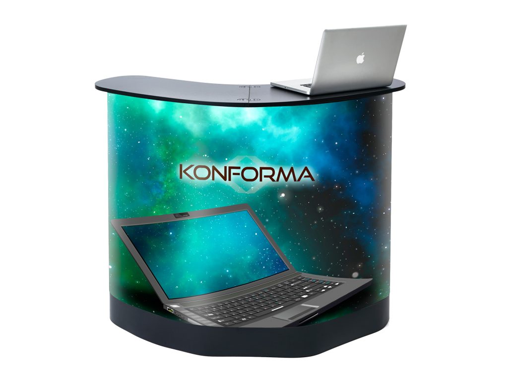 Transportera och förvara ditt mässmaterial i denna box. Väl på mässan/eventet öppnar du bara boxen och drar på bildpanelen och lägger på den tillhörande bordsskivan. Disken blir en naturlig mötesplats att samlas kring. Inuti finns fyra hyllplan där du kan förvara trycksaker, demoprodukter, presentreklam och dryck.