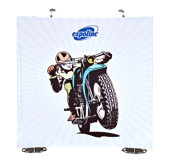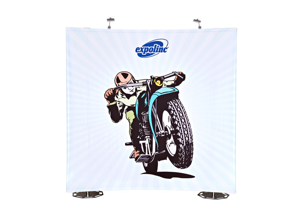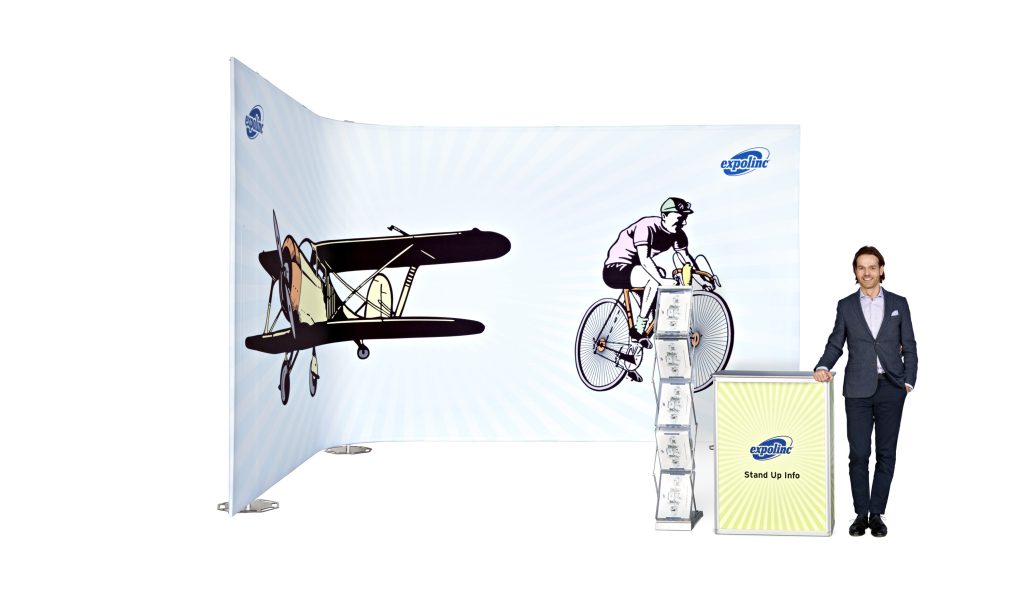 Med Fabric System kan du göra stort intryck med en skräddarsydd bildvägg med dina egna mått, former och höjder. Välj mellan rak eller innersväng och yttersväng. Vill du byta bild eller storlek? Inga problem, systemet kan återanvändas i åratal och du behöver bara uppdatera ditt motiv. Systemet är enkelt att sätta upp och textilen monteras i arbetshöjd och lyfts sedan upp till önskad höjd.