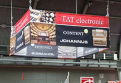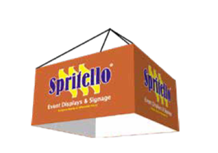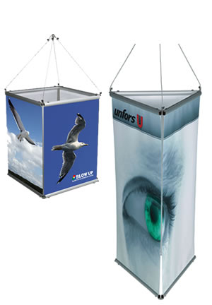 Det perfekta exponeringsmöjlighet i taket på mässan eller butik. Lätt att sätta samman och synlig från alla vinklar.